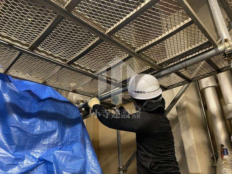改修工事におけるアスベスト除去後に、耐火被覆材の復旧工事を行います。